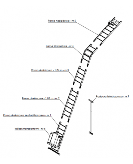 1. Kopėčių rėmas 1,85m (su stabilizatoriumi) – 1 vnt.